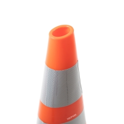Este cono reflectante puede ser manipulado por una sola persona. Además, cuenta con una ranura integrada en la parte superior, que permite agarrarlo firmemente. Los conos son apilables entre sí, lo que facilita su transporte y almacenamiento.