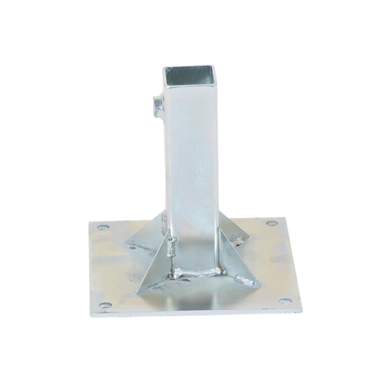 La placa para poste es un equipo profesional de calidad superior. Está fabricada en acero galvanizado en caliente. La base está perforada con cuatro agujeros que sirven para marcar fácilmente los lugares donde perforar en el suelo. La fijación de la placa en la superficie debe realizarse utilizando tornillos con tacos o pernos (no incluidos). La forma del tubo es cuadrada, con un lado de 40 mm. Se integra un tornillo de bloqueo en uno de los lados, con el objetivo de mantener firmemente el poste de carretera en su soporte.