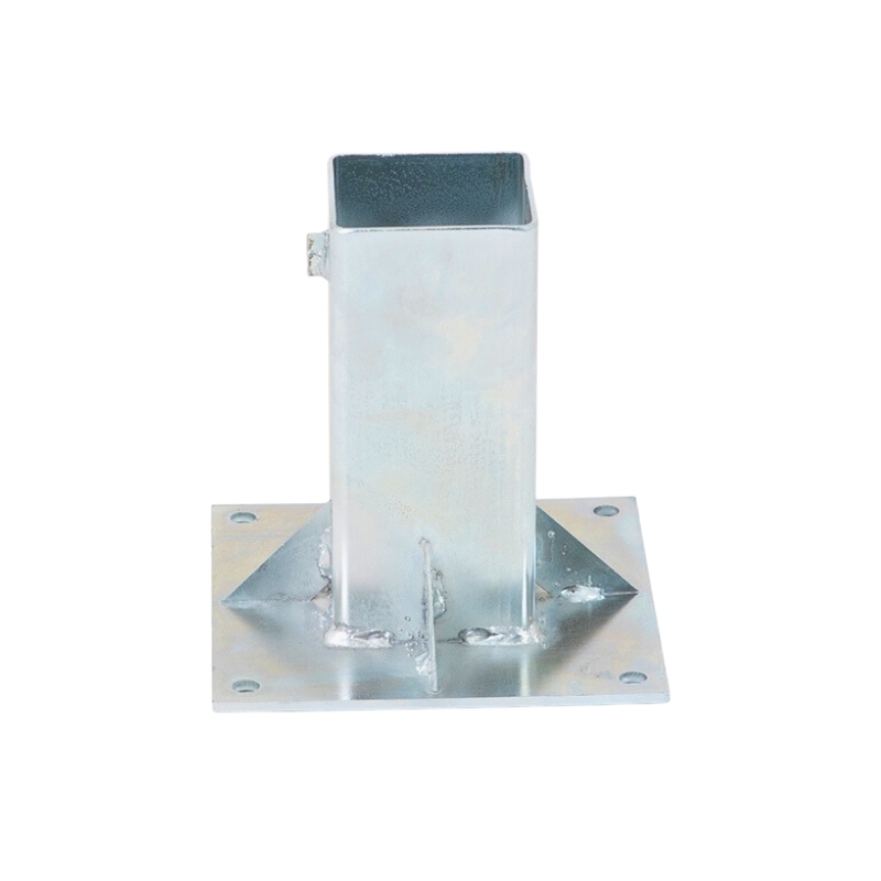 El soporte para poste es un equipo profesional de alta calidad. Está fabricado con acero galvanizado en caliente. Se han perforado cuatro agujeros en la platina para facilitar la ubicación de los lugares donde perforar en el suelo. La fijación puede realizarse con tornillos o pernos (no incluidos). El soporte tiene forma cuadrada y mide 80 mm de lado. Está equipado con un tornillo de apriete integrado en uno de los lados, para mantener firmemente el poste de señalización en la base.