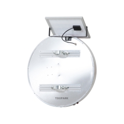Nuestro panel luminoso está equipado con 70 LED distribuidos en la superficie del panel. Está compuesto por LED de color amarillo para el contorno y los símbolos, y dos filas de LED rojos que se integran en el listel. Las luces LED se distinguen fácilmente gracias a su diámetro de 5 mm. El panel solar se encuentra en la parte superior del panel vial y se alimenta gracias a su batería de litio de 11,1V/5Ah. Esta batería está integrada en el dispositivo y permite varias horas de autonomía. El panel de señalización está fabricado en acero galvanizado y tiene un diámetro de 650 mm. En la parte frontal, está recubierto con una lámina retrorreflectante de clase 2 de alta calidad, fabricada por el especialista 3M.